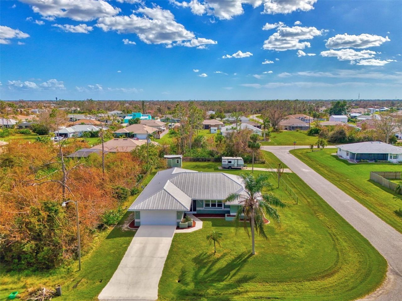 Beautifully upgraded 3-bedroom, 2-bath home offering an abundance of space along with updated kitchen, baths, and appliances. Situated on two oversized corner lots totaling over half an acre, this property provides both room to spread out and added privacy.From the moment you step inside, you'll immediately appreciate the spacious layout and thoughtful updates that make this home truly inviting. The floor plan features a living room, family room, interior laundry, breakfast nook, and an impressive 26-foot under-roof lanai-perfect for relaxing or entertaining.All three bedrooms include walk-in closets, while the second bathroom features a luxurious jetted tub. Three sets of French doors open to the lanai, overlooking the additional rear lot, which is partially cleared and includes a second driveway along with fencing-ideal for pets while keeping wildlife out.Enjoy peace of mind with a durable metal roof, accordion shutters, full perimeter gutters, and concrete curbing. Located in an X flood zone, this home offers added confidence and security. Wind mitigation and 4-point inspection reports are available upon request.Additional highlights include 3 bedrooms and 2 bathrooms, updated kitchen, baths, and appliances, two oversized corner lots totaling over half an acre, a spacious layout with both living and family rooms, an interior laundry room, breakfast nook, a 26-foot under-roof lanai, walk-in closets in all bedrooms, a jetted tub in the secondary bath, three sets of French doors, a partially cleared second lot with a second driveway, fenced areas for pets, a metal roof, accordion shutters, full gutters with concrete curbing, location in an X flood zone, and available wind mitigation and 4-point inspection reports.